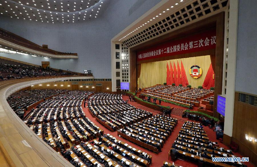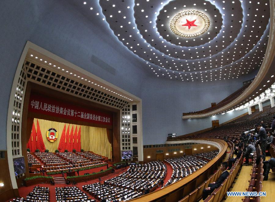 11 марта -- В Доме народных собраний сегодня во второй половине дня состоялось 4-е пленарное заседание в рамках 3-й сессии Всекитайского комитета Народного политического консультативного совета Китая /ВК НПКСК/ 12-го созыва.