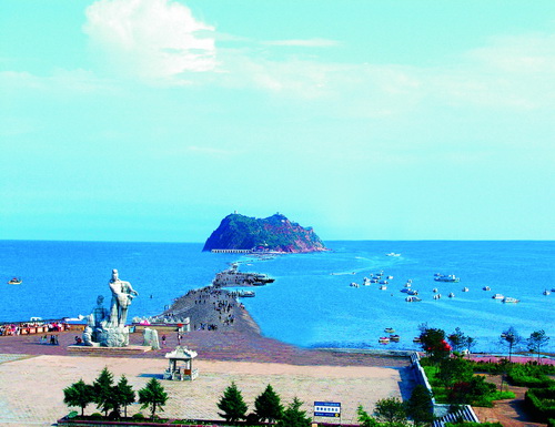![]() Гору Бицзяшань с материком связывает дорога, которая появляется только во время отлива