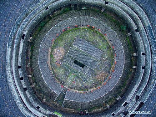 Глинобитные дома-крепости «тулоу» на востоке Китая. Такие земляные здания (так буквально можно перевести название «тулоу») строились в XII-XX веках в провинции Фуцзянь. Эти многоэтажные квадратные или круглые постройки с просторными внутренними дворами вмещали до 800 человек. Обычно в них жили целыми общинами, поэтому тулоу были известны как «малые семейные королевства». Для построек характерны высокие укрепленные земляные стены, черепичные крыши и широкие карнизы. Тулоу были включены в список Всемирного наследия ЮНЕСКО в 2008 году. (Синьхуанет)