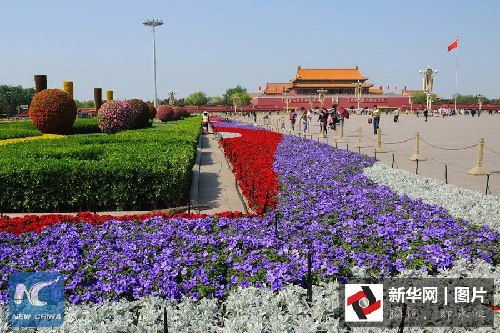 На Тяньаньмэнь – Площади «Врат небесного спокойствия» в Пекине – в преддверии 1 мая разбили настоящий сад. (Синьхуа)