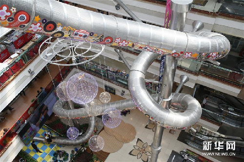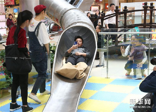 18 апреля в одном из торговых центров Шанхая была введена в эксплуатацию труба для спуска посетителей с верхних этажей, что привлекло сюда множество любопытных горожан.
