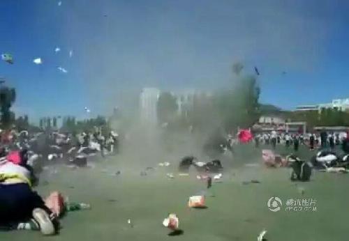 ![]() 20 апреля в 16.25, когда на школьном стадионе одной из школ уезда Гуачжоу северной провинции Ганьсу проходили спортивные состязания, к уезду приблизился смерч. В результате сильного ветра школьник 3-го класса Ли Цяци, участвовавший в спартакиаде взлетел в воздух и упал. Осмотр врача показал, что ребенок отделался лишь легкими ушибами на затылке. Здоровью его ничего не угрожает. (<<Жэньминь жибао>> он-лайн)