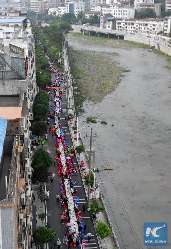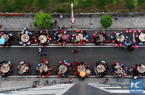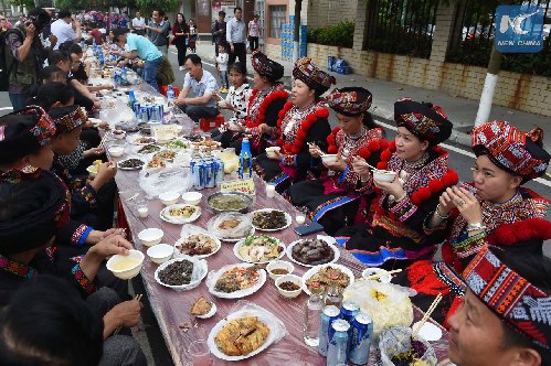 ![]() Такой торжественный обед провели на берегу реки Лэлихэ в уезде Тяньлинь Гуанси-Чжуанского автономного района. За длинными столами и небольшими столиками разместилось более 3400 человек. Банкет устроили в честь открытия традиционного фестиваля чжуанской музыкальной драмы хоугань. (Синьхуа)