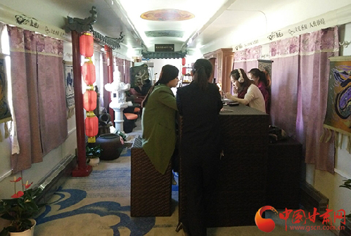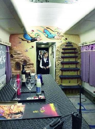 Столовый вагон, декорированный в тематике достопримечательностей Дуньхуана, стал самым ярким моментом этого поезда.