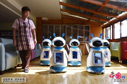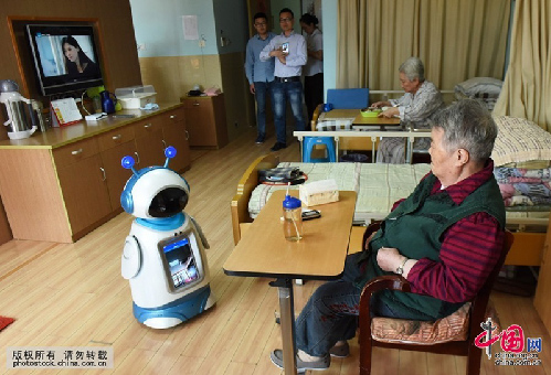 В Ханчжоуском центре социального благосостояния /провинция Чжэцзян, Восточный Китай/ пять роботов напоминают 1300 подопечных, когда принимать лекарство.