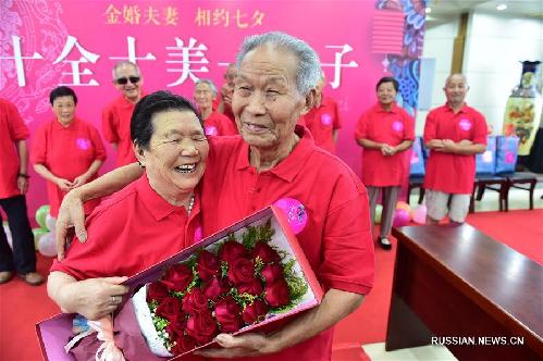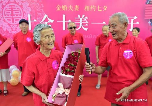 ![]() 2 августа-- Традиционный праздник "Цисицзе", еще называемых китайским днем влюбленных, празднуется в 7-й день 7-го месяца по лунному календарю, в этом году его празднование выпадает на 9 августа. По этому случаю в одном из районов города Хэфэй, административного центра провинции Аньхой /Восточный Китай/ сегодня организовали праздник для десяти пар, отмечающих в этом году пятидесятилетнюю годовщину брака. (Синьхуа)
