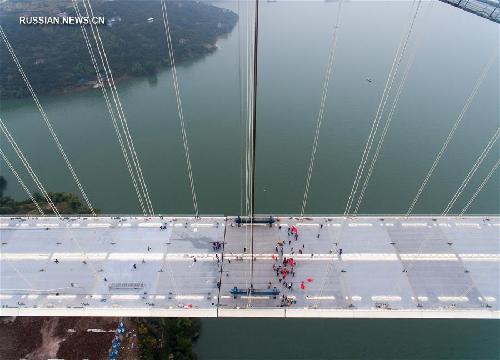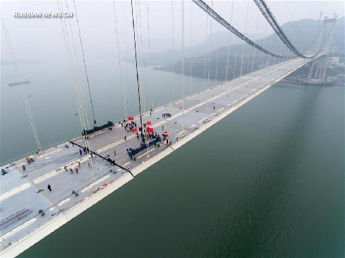 В районе Ваньчжоу города Чунцин завершилась стыковка автодорожного моста через реку Янцзы