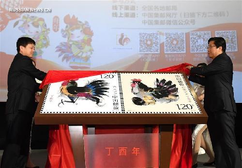 ![]() 30 ноября -- Официальный эскиз двух почтовых марок с изображением бегущего петуха и курицы с цыплятами -- символов будущего года по лунному календарю -- представили сегодня в Пекине. (Синьхуа)