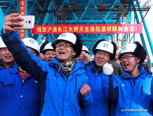 ![]() 21 января -- Церемония завершения смыкания совмещенного железнодорожно-автомобильного моста через фарватер Тяньшэнган -- одного из звеньев проекта большого моста Шанхай -- Наньтун через реку Янцзы -- прошла сегодня в провинции Цзянсу /Восточный Китай/. Новый мост стал крупнейшим в мире по протяженности основного пролета среди комбинированных арочных мостов. ( Синьхуа)