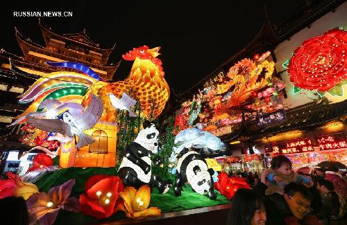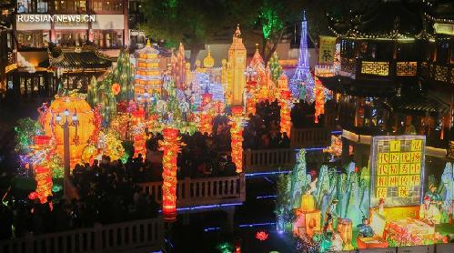 3 февраля-- В парке Юйюань в Шанхае /Восточный Китай/ в эти дни продолжается грандиозный фестиваль традиционных фигурных фонарей, приуроченный к празднику Весны -- Новому году по китайскому лунному календарю. (Синьхуа)